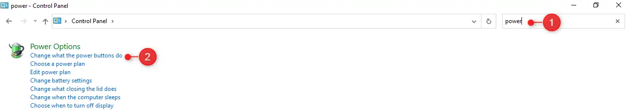 - In the Control panel type in power, then click on Change what the power buttons do;