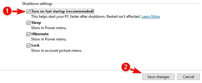 Note: If you can’t see the Turn on fast startup (recommended) option, this means that the hibernation is disabled on your computer, and you need to enable it.